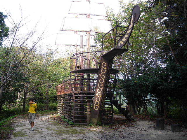 無料ということは・・・そう。メンテナンスは望んではいけないということです!途中にあるローラー滑り台も工事中だったけど、気にしない!周りがすごくきれいな海なので細かいことは気にならないのです!!とにかくアップダウンの激しい道すがらにアスレチックがちょこちょこあって、まあ子供たちは楽しかったみたいです。